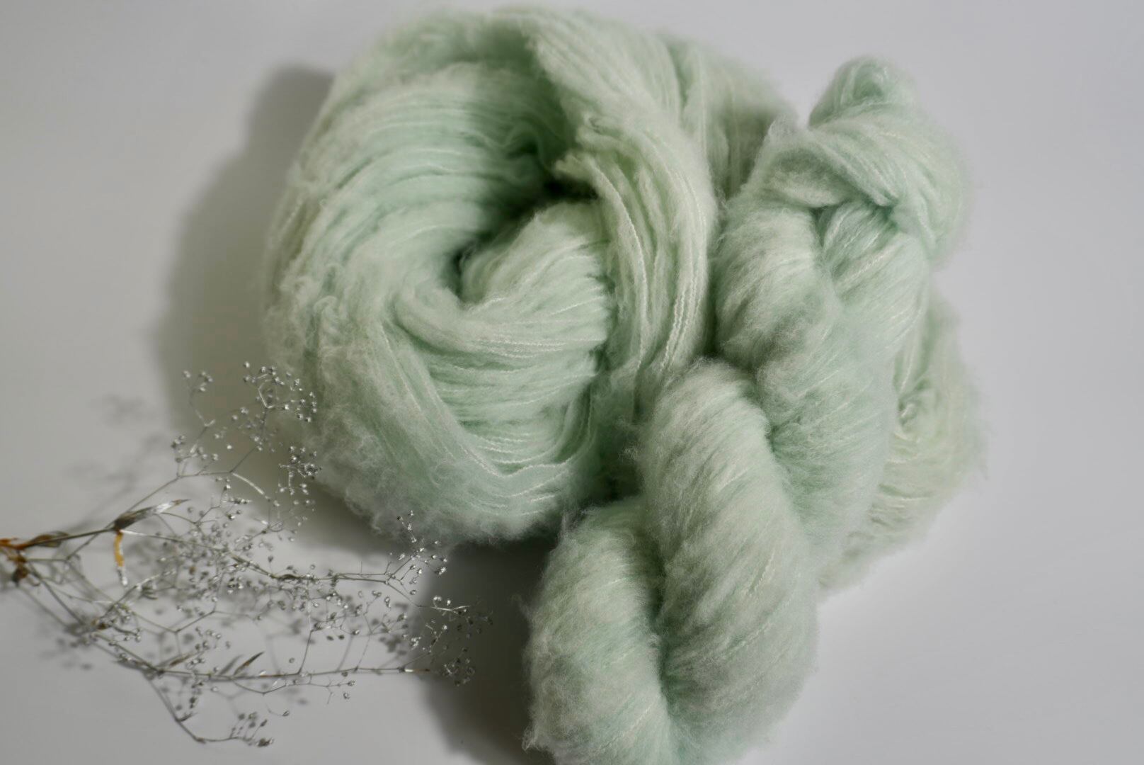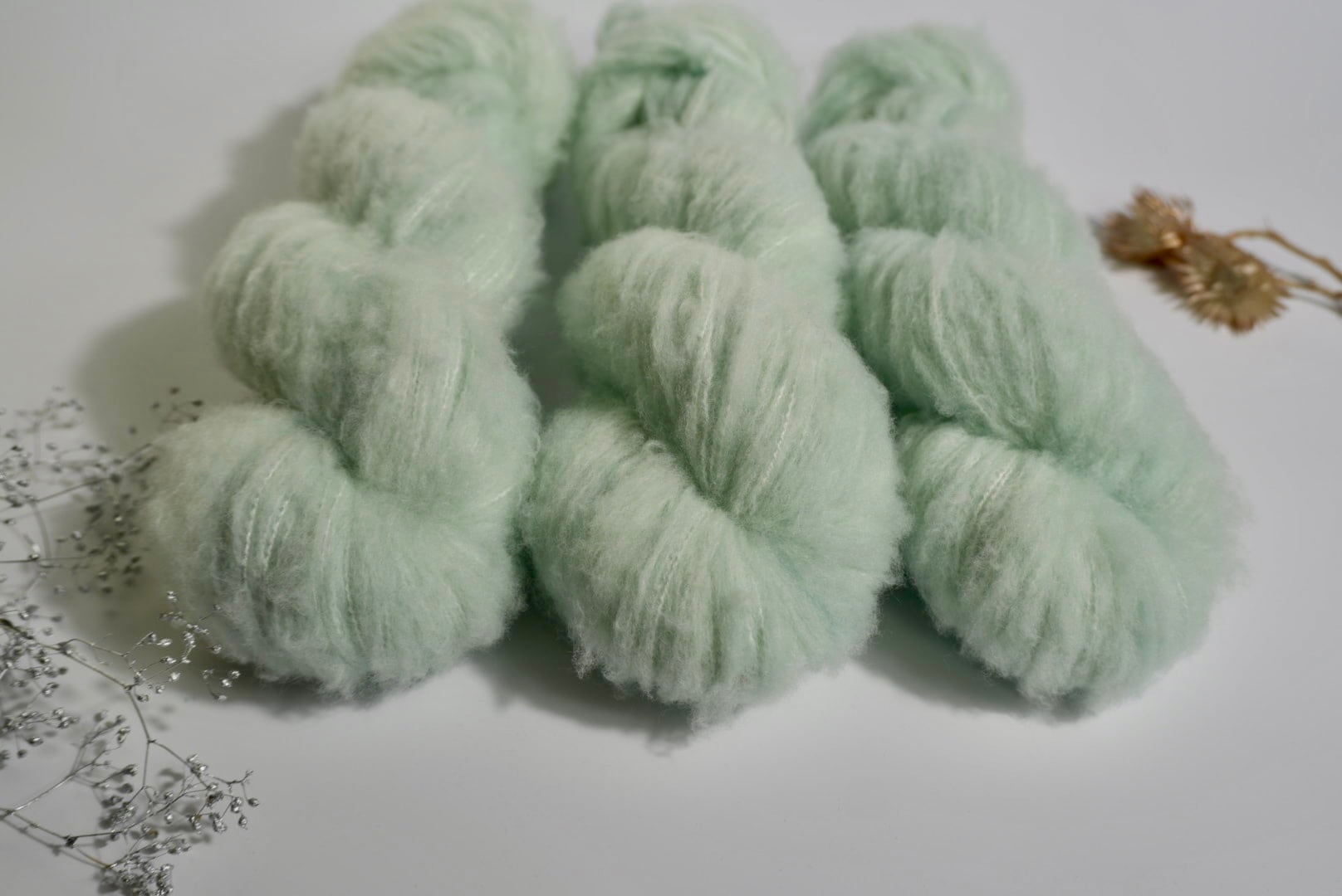 薄手のストールや、他の糸と引き揃えて編むことで「光」を表現するのに最適です。
